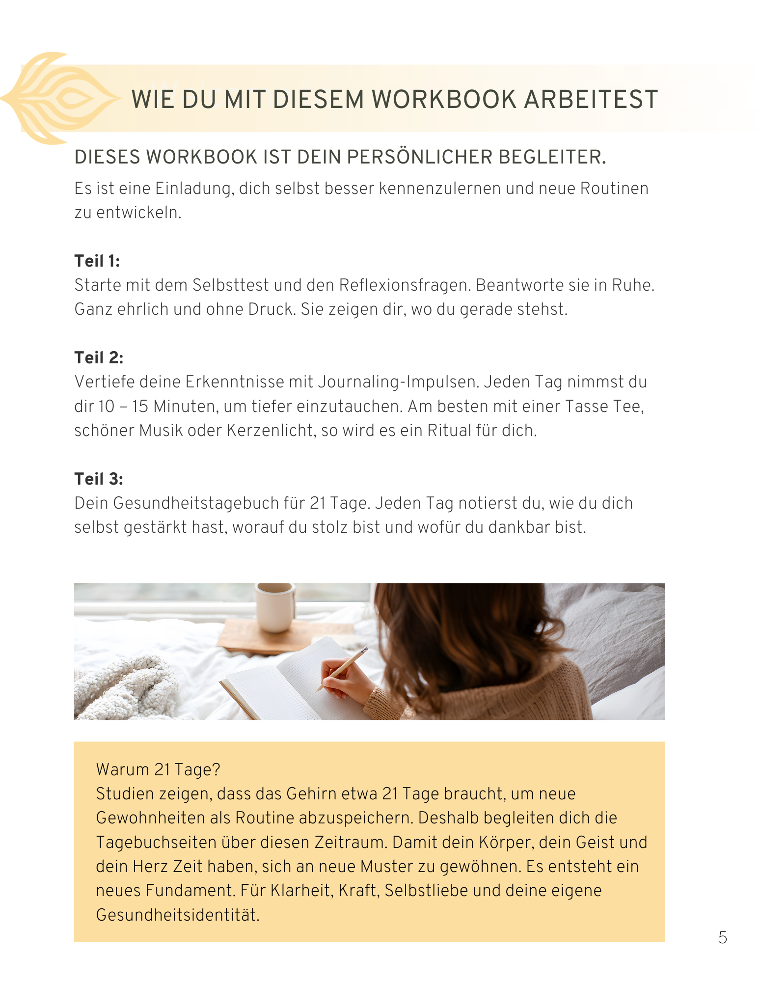 In diesem 80-seitigem Workbook findest du eine liebevoll aufgebaute Struktur, die dich Schritt für Schritt zurück zu dir selbst führt: